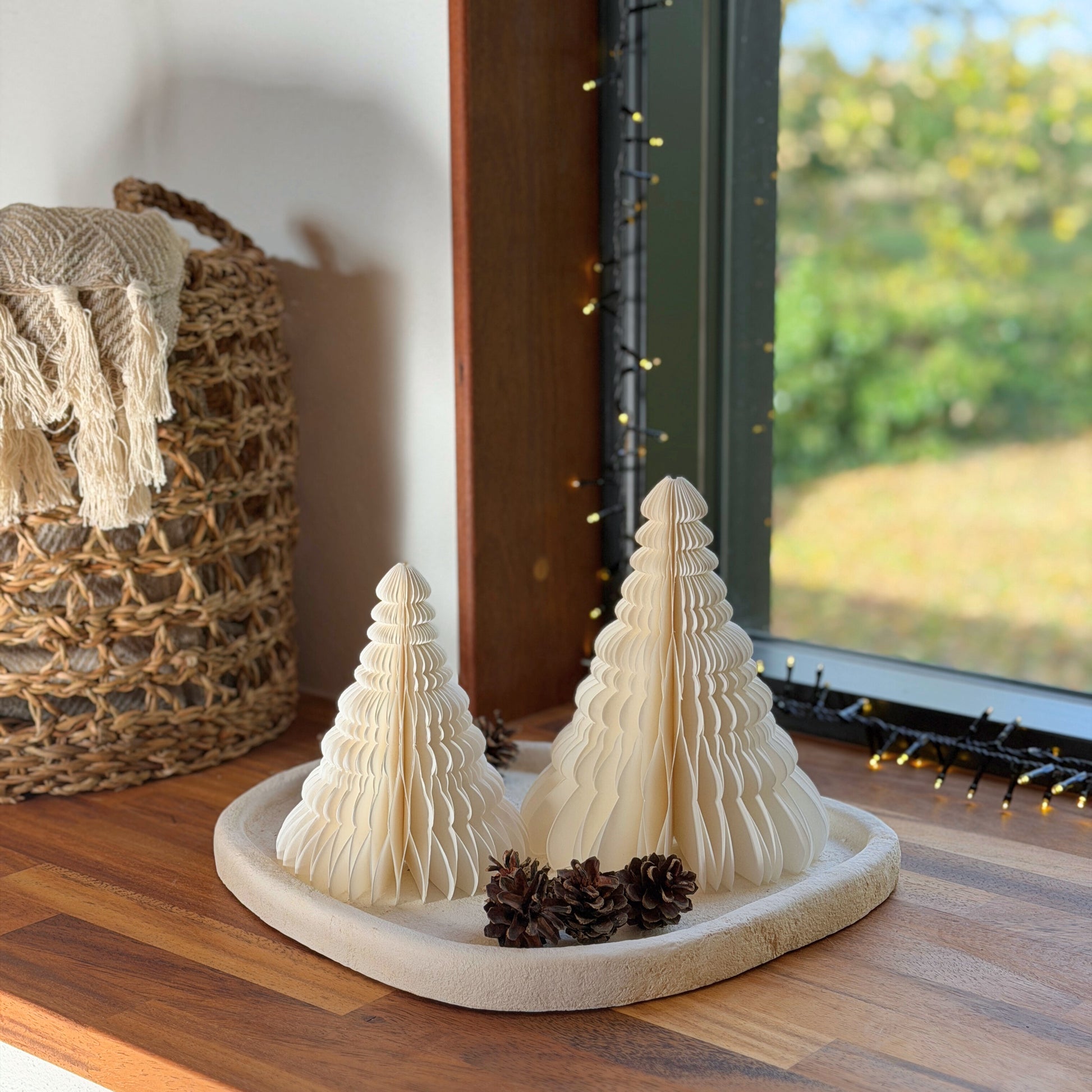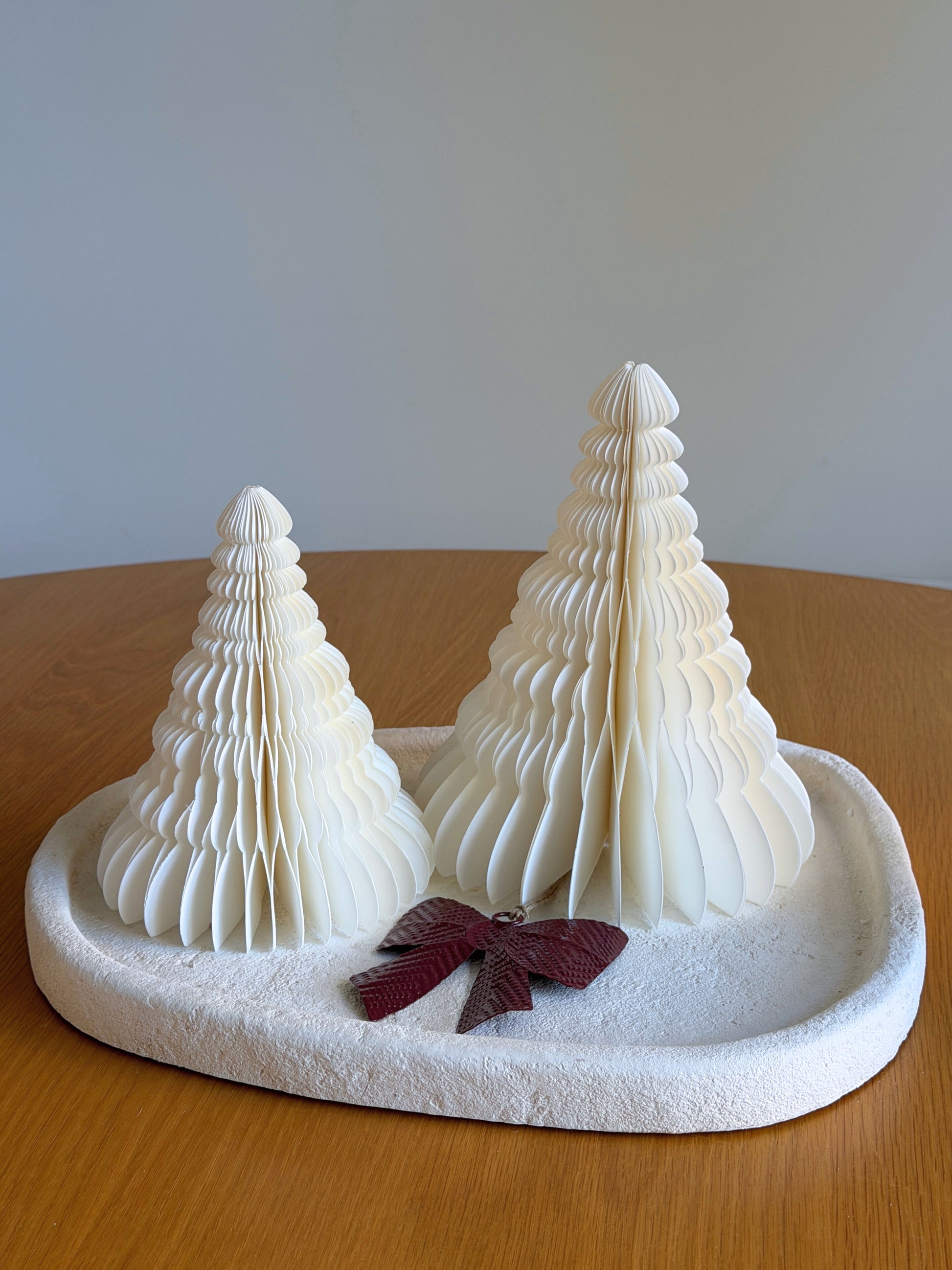 🎄 Skab en elegant og moderne julestemning med dette smukke sæt af dekorative juletræer i hvid. Sættet indeholder to forskellige størrelser, der sammen skaber en harmonisk og stilfuld juledekoration i dit hjem. De minimalistiske fold-ud træer er perfekte til den moderne julepynt. ✨