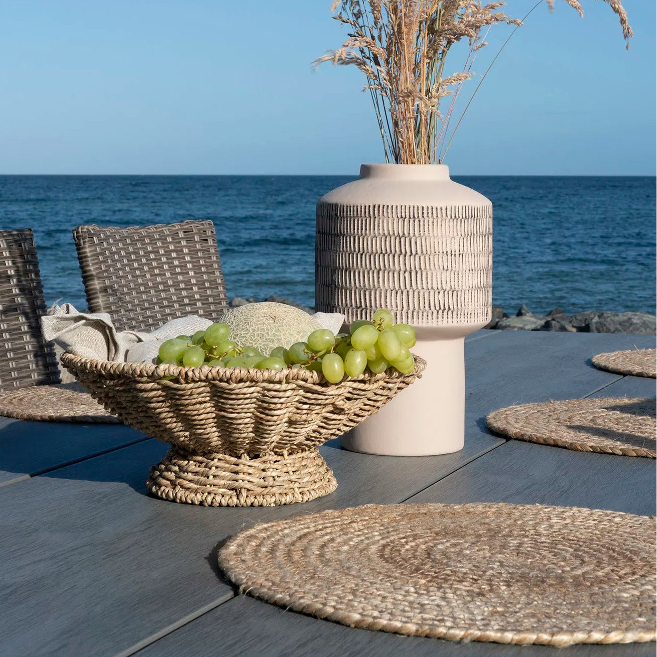 Den runde form og det flettede søgræs giver fadet et levende og organisk udtryk, hvor materialets naturlige struktur får lov at stå frem. Eira er ideel til servering af frugt, brød, snacks eller små anretninger – men fungerer også smukt som dekorativ opbevaring på køkkenbordet, spisebordet eller en reol.