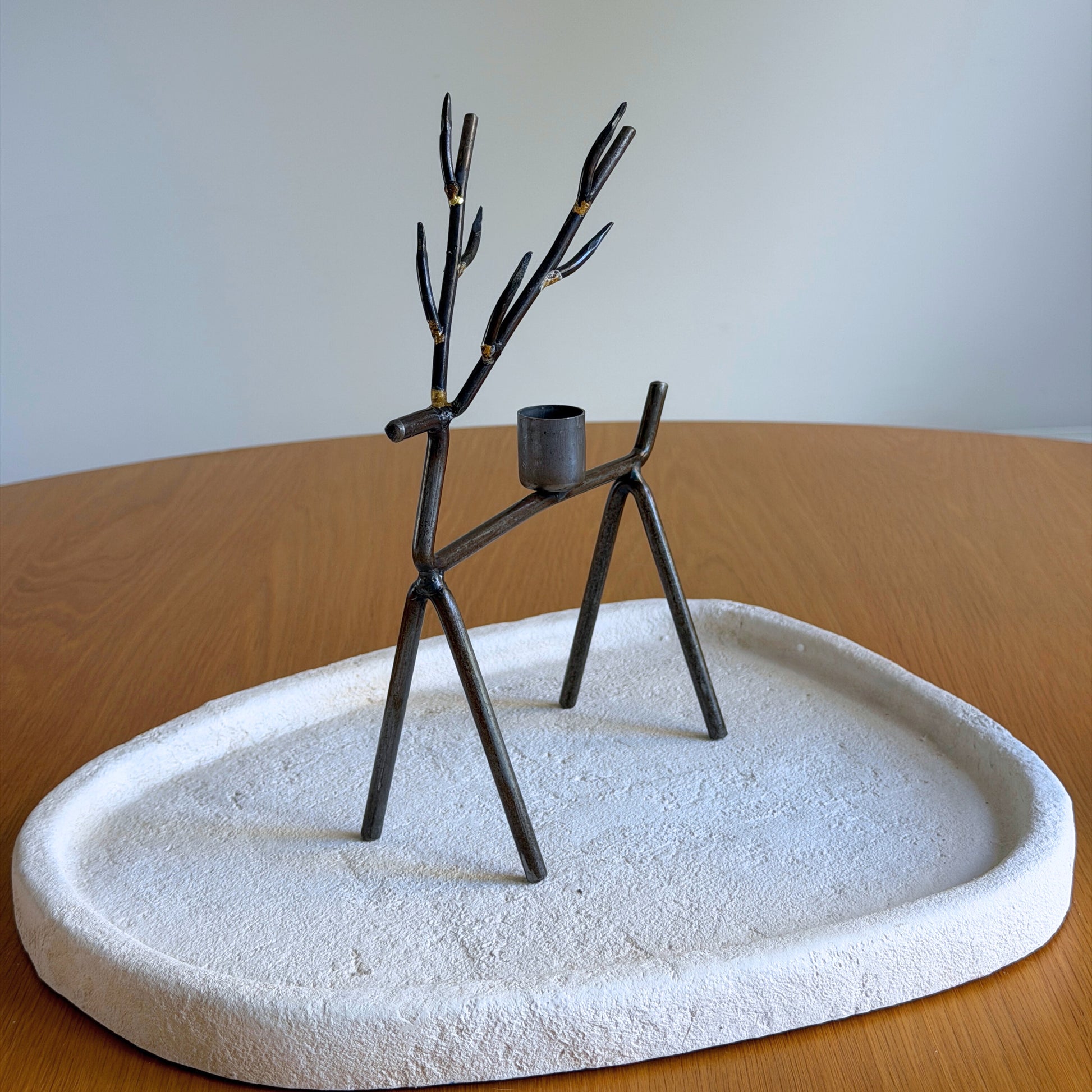 🦌 Skab en varm og hyggelig stemning i hjemmet med denne charmerende lille rensdyr lysestage i rust/messing. Det minimalistiske design og den rustikke finish gør den til en smuk detalje, der passer perfekt ind i julestemningen. ✨