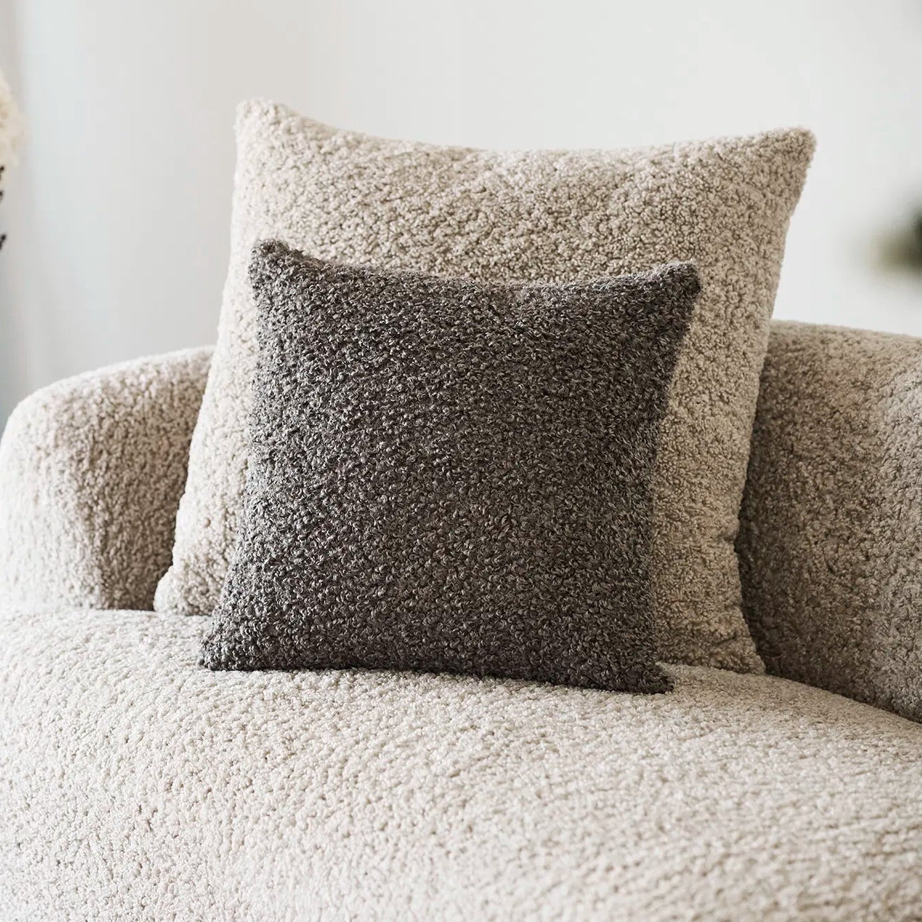 Pudens bløde bouclé-overflade giver et levende og taktilt udtryk, som skaber dybde i indretningen. Den varme brune farve gør Mila nem at kombinere med både lyse nuancer, naturmaterialer og mere markante elementer – perfekt til dig, der ønsker et harmonisk og afbalanceret hjem.