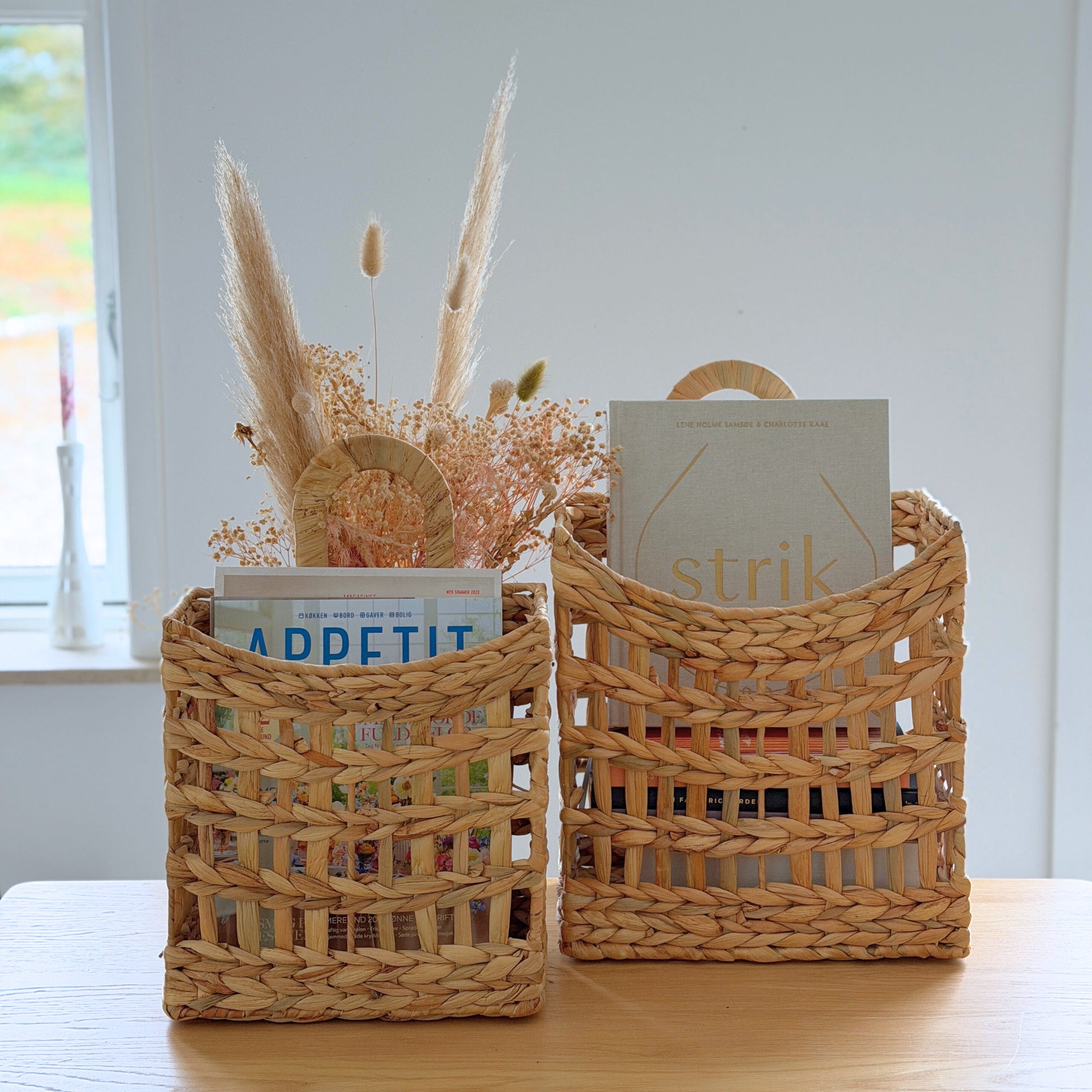 💕 Mød Niva – et sæt af to praktiske kurve som kan hænges op i naturligt vandhyacint, der giver naturlig opbevaring med et dekorativt udtryk. ✨