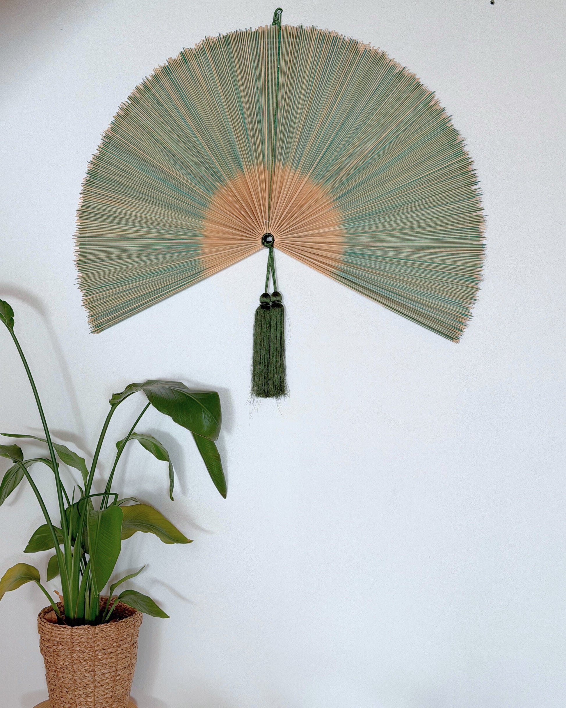 Saga er en håndlavet bambusvifte i naturlige nuancer, skabt til at give væggen et roligt udtryk – uden at fylde eller støje. Den tilfører varme, tekstur og balance, og samler rummet på en måde, der føles naturlig og gennemført.Hver vifte har sit eget spil i flet og farvetoner. Det er en del af charmen – og det, der gør den personlig.