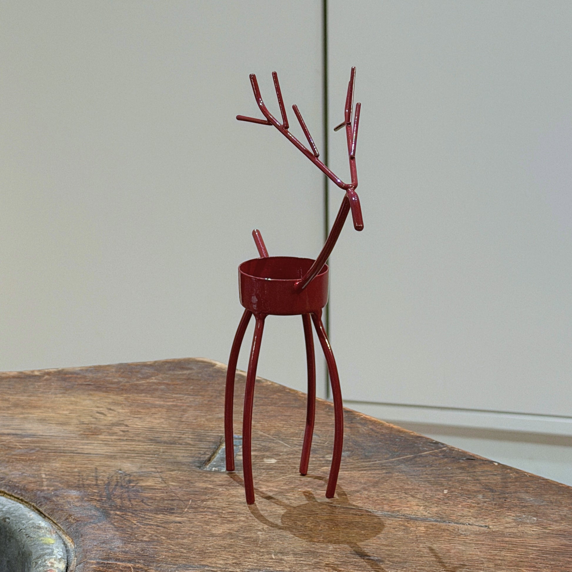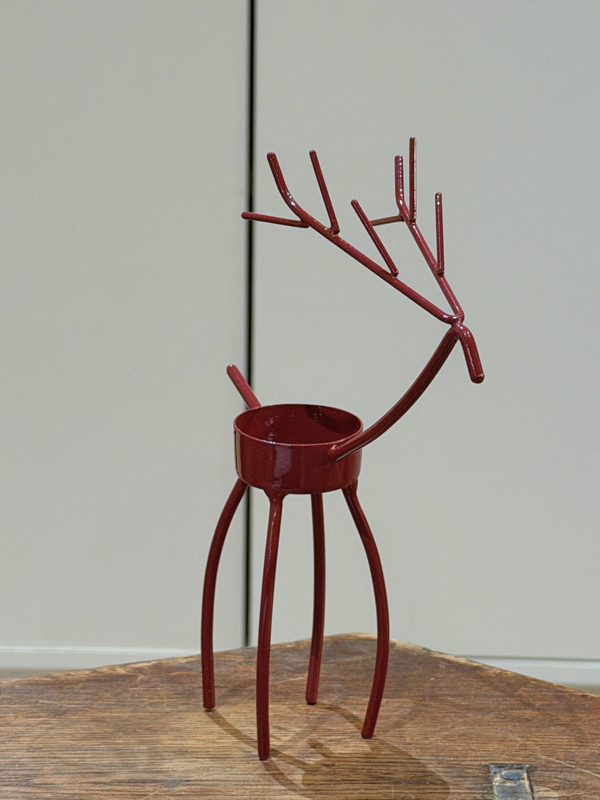 🦌 Skab en varm og hyggelig stemning i hjemmet med denne charmerende store rensdyr fyrfadsstage i Burgundy. Det minimalistiske design og den rustikke finish gør den til en smuk detalje, der passer perfekt ind i julestemningen. ✨