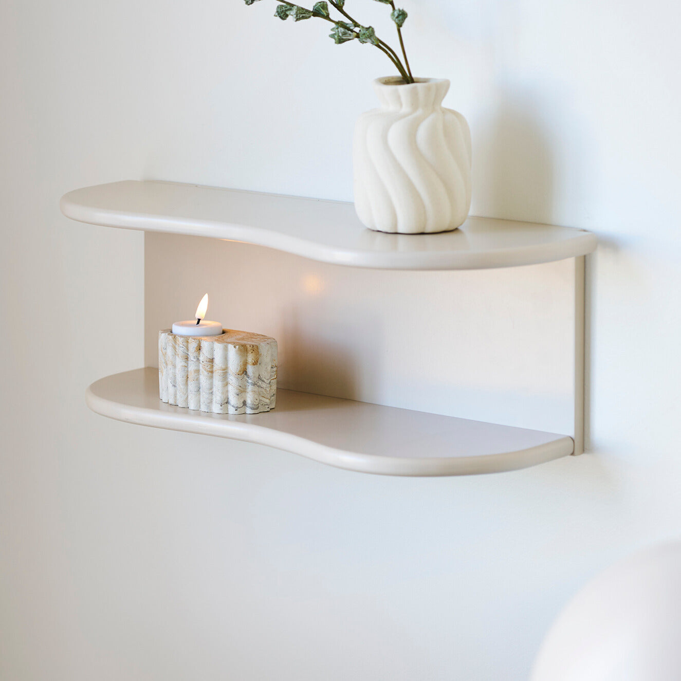💕 Mød Wave – en elegant væghylde, der skaber både funktionalitet og stil i dit hjem. Denne smukke væghylde i beige nuancer bringer orden og varme til enhver væg. ✨