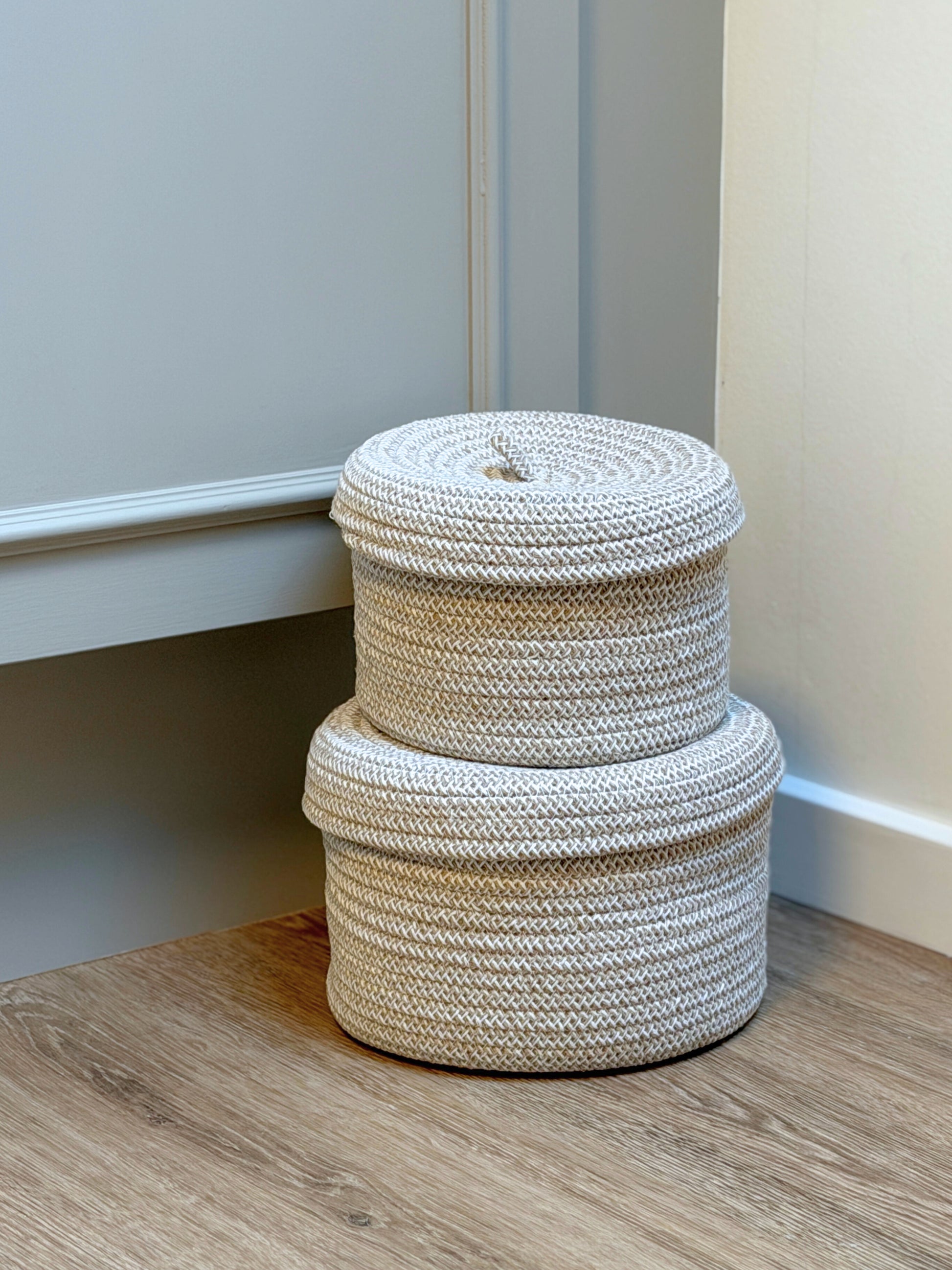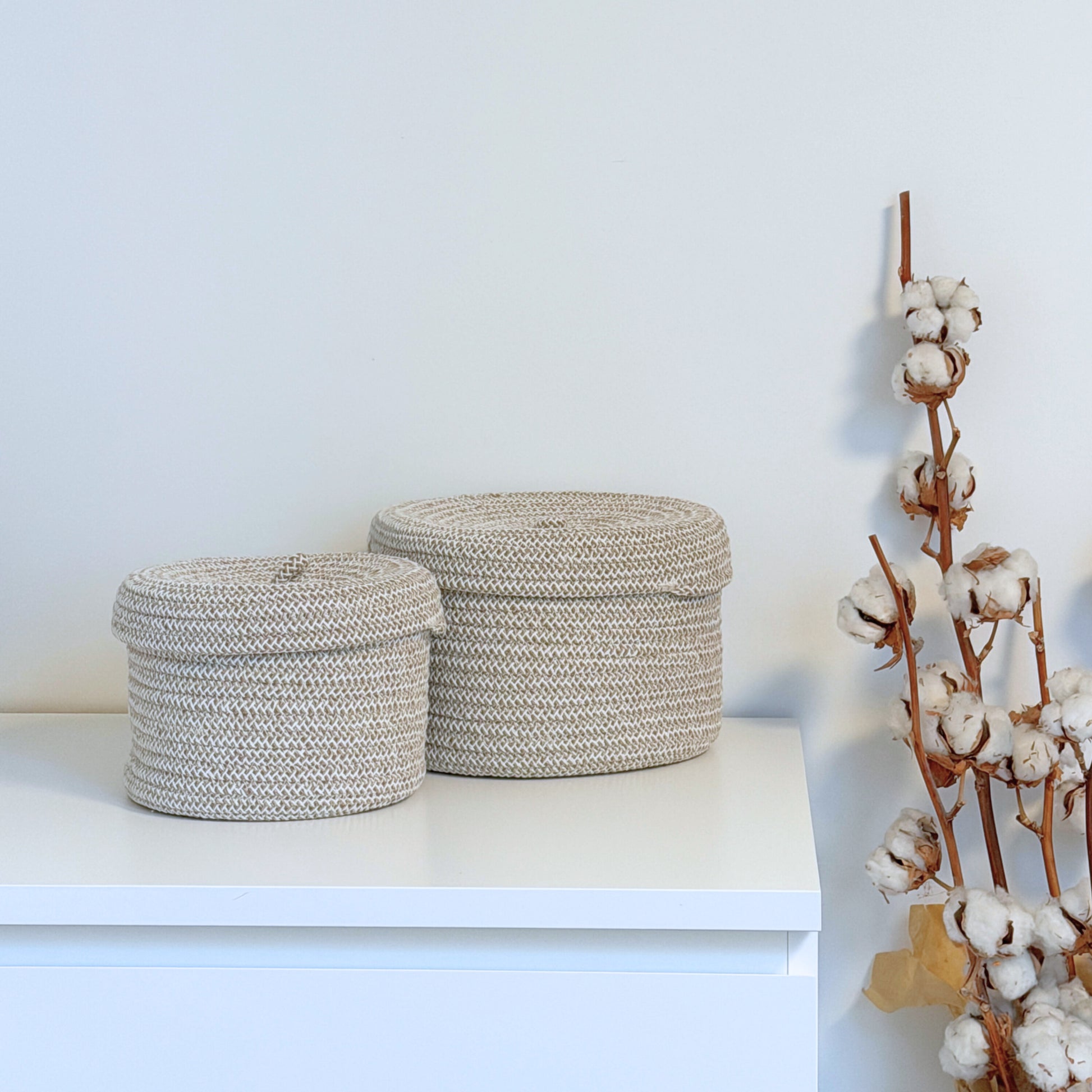 💕 Mød Weave – et enkelt kurvesæt i bomuld, der er med til at bringe orden i dit hjem. Dette smukke sæt i beige nuancer skaber en varm og indbydende atmosfære i ethvert rum.